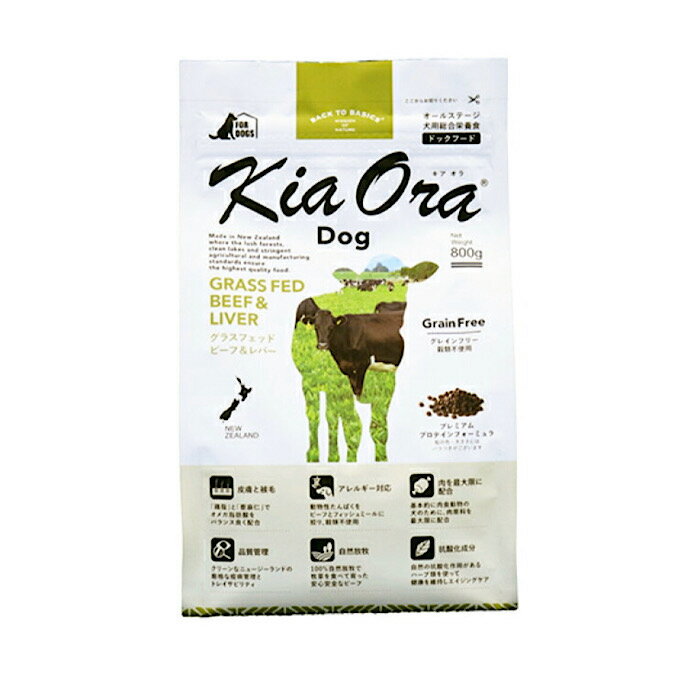 KiaOra Dog グラスフェッドビーフ&レバー 800gキアオラ ドッグフード 犬 穀物不使用 グレインフリー ドックフード ドライフード カリカリ 犬用フード シニアフード 老犬 成犬 子犬 パピー 高齢 シニア犬 チキン アレルギー 高タンパク 健康 涙焼け ニュージーランド産