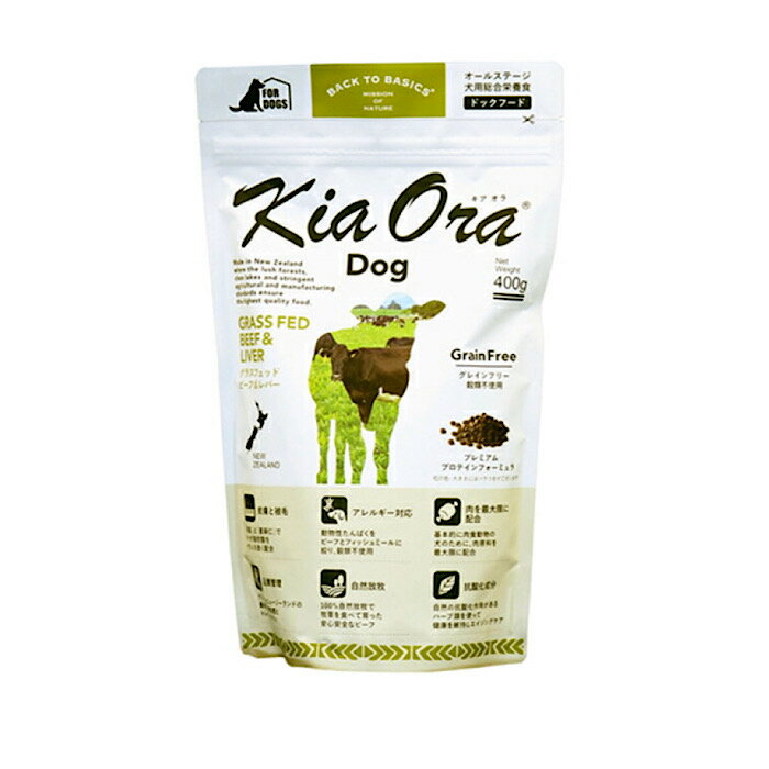 Kia Ora キアオラ ドッグフード グラスフェッドビーフ&レバー 400g 正規品 ドッグフード お試し 小粒 ドライフード 全犬種用 オールステージ 全ライフステージ 犬用品 犬用 グレインフリー 小型犬 中型犬 大型犬 無添加 穀物不使用 ペットフード 送料無料 【おまけ付】