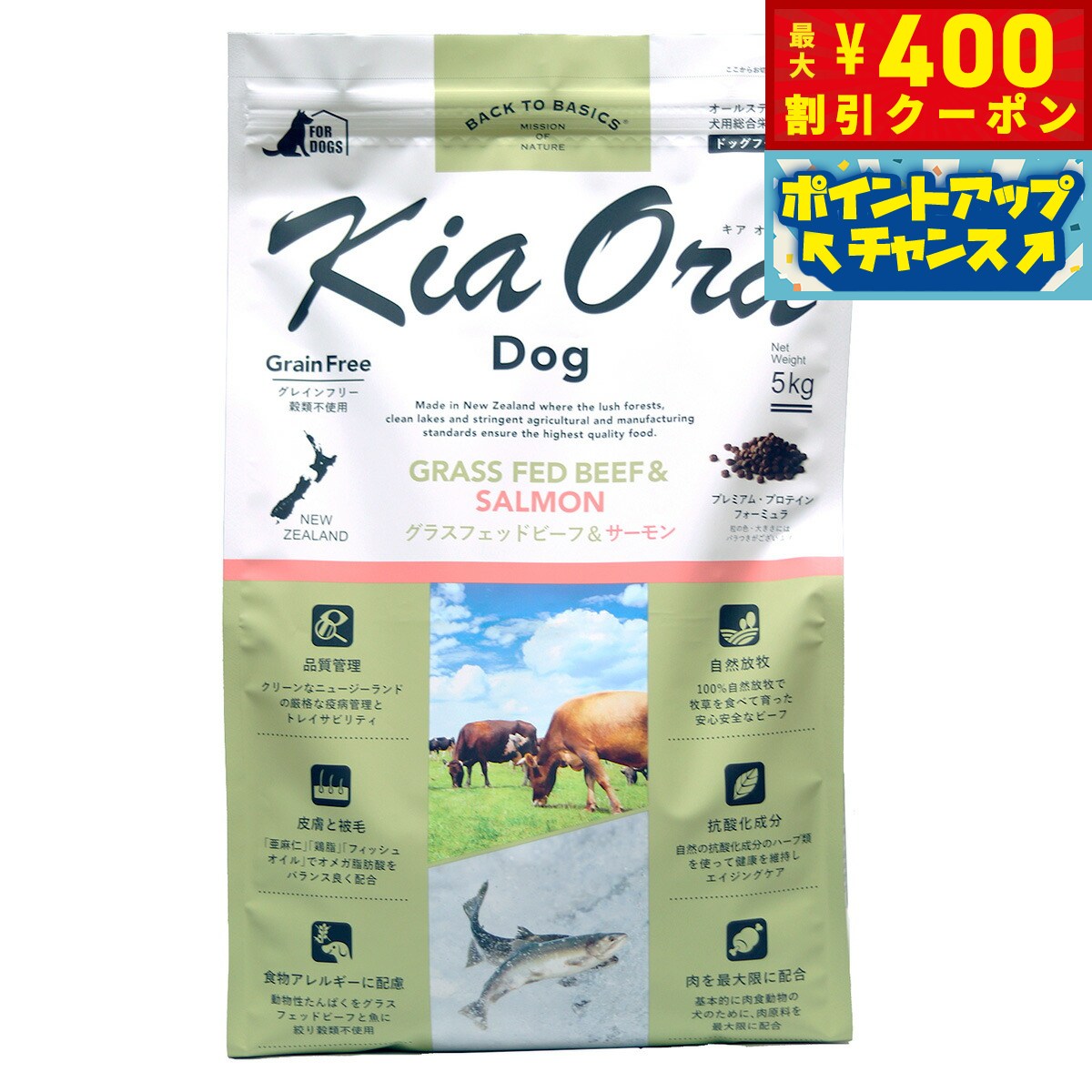 【400円OFFクーポン!&店内ポイント最大46倍!12月1日!】キアオラ ドッグフード グラスフェッドビーフ&サーモン 5kg 犬 ドライフード 総合栄養食 無添加 グレインフリー 全年齢用 オールブリード 【送料無料】