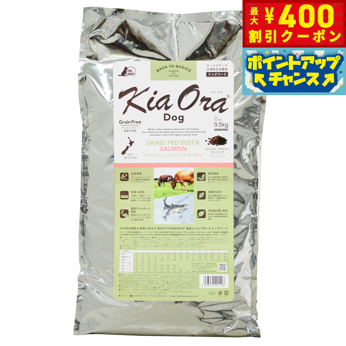 Kia Ora キアオラ ドッグフード グラスフェッドビーフ&サーモン 9.5kg 正規品 ドッグフード 小粒 ドライフード 全犬種用 オールステージ 全ライフステージ 犬 犬用 グレインフリー 小型犬 中型犬 大型犬 無添加 穀物不使用 ペットフード ペット用品 送料無料 【おまけ付】