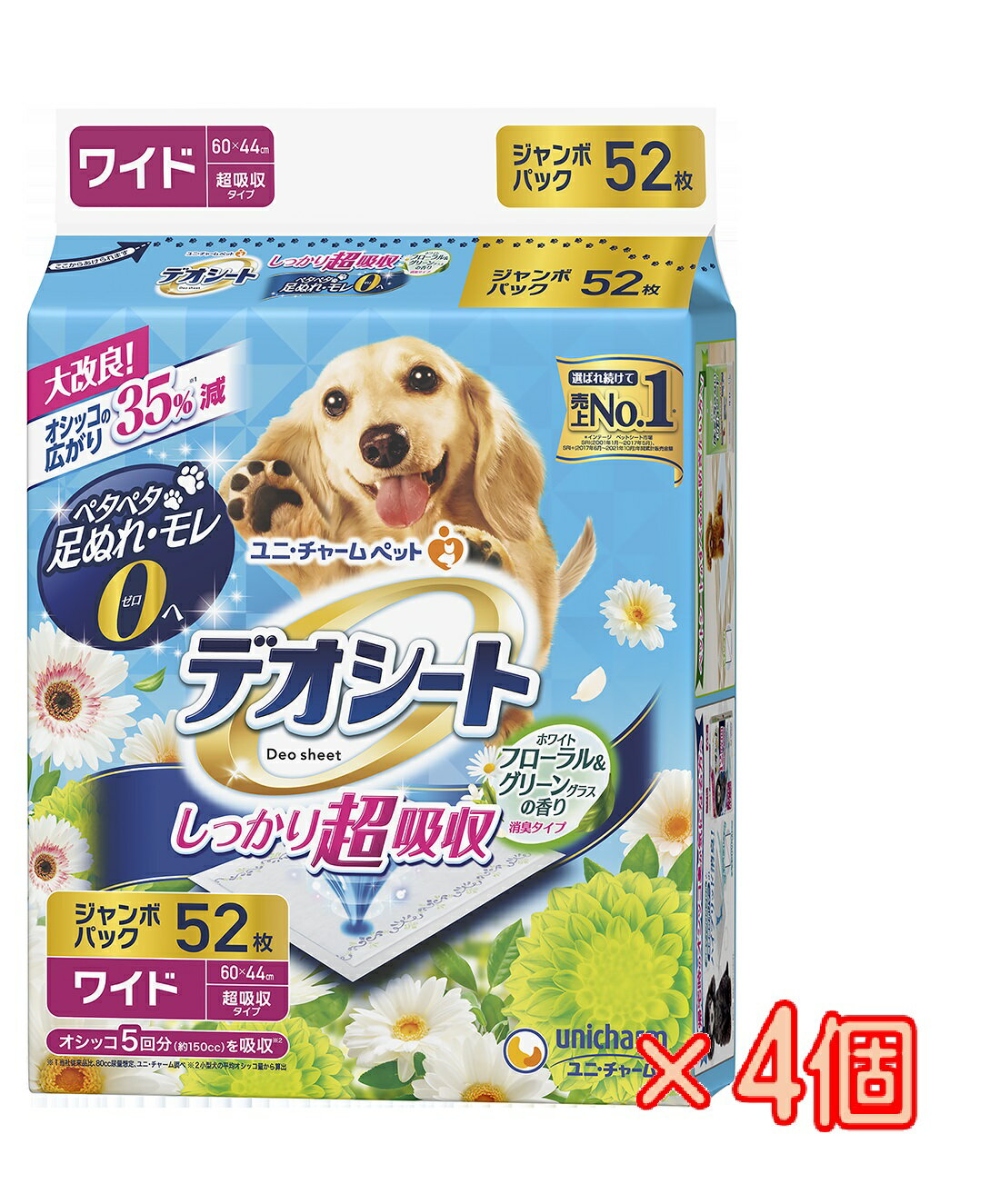 ユニ・チャーム デオシート しっかり超吸収 香り消臭タイプ ホワイトフローラル&グリーングラスの香り ワイド 52枚×4 【公式ショップ】