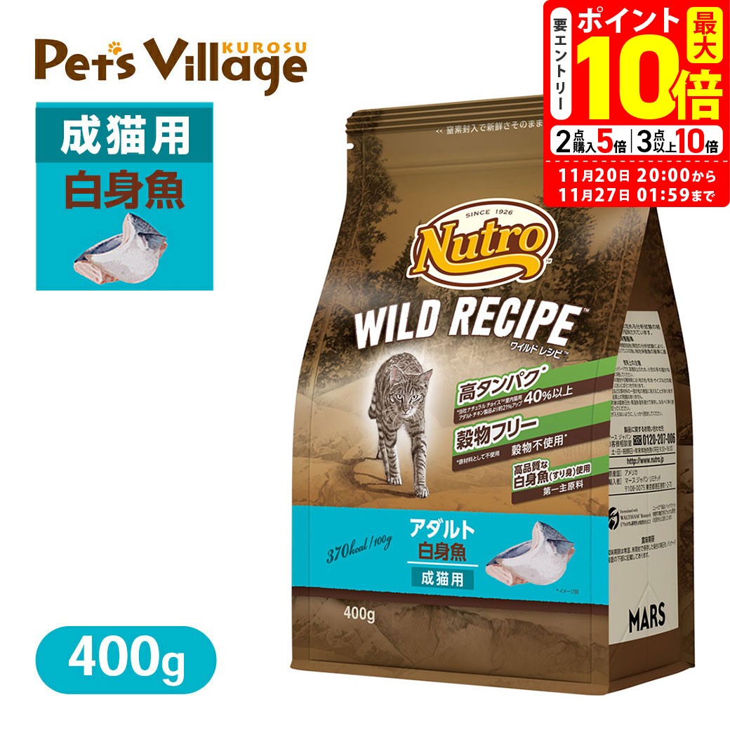 ポイント最大10倍!11/20 20:00〜11/27 01:59まで|お試し 公認店 ニュートロ キャット ワイルドレシピ アダルト 白身魚 成猫用 400g ごはん ご飯 【ワイルドレシピ(WILD RECIPE)】[キャットフード] ペッツビレッジクロス