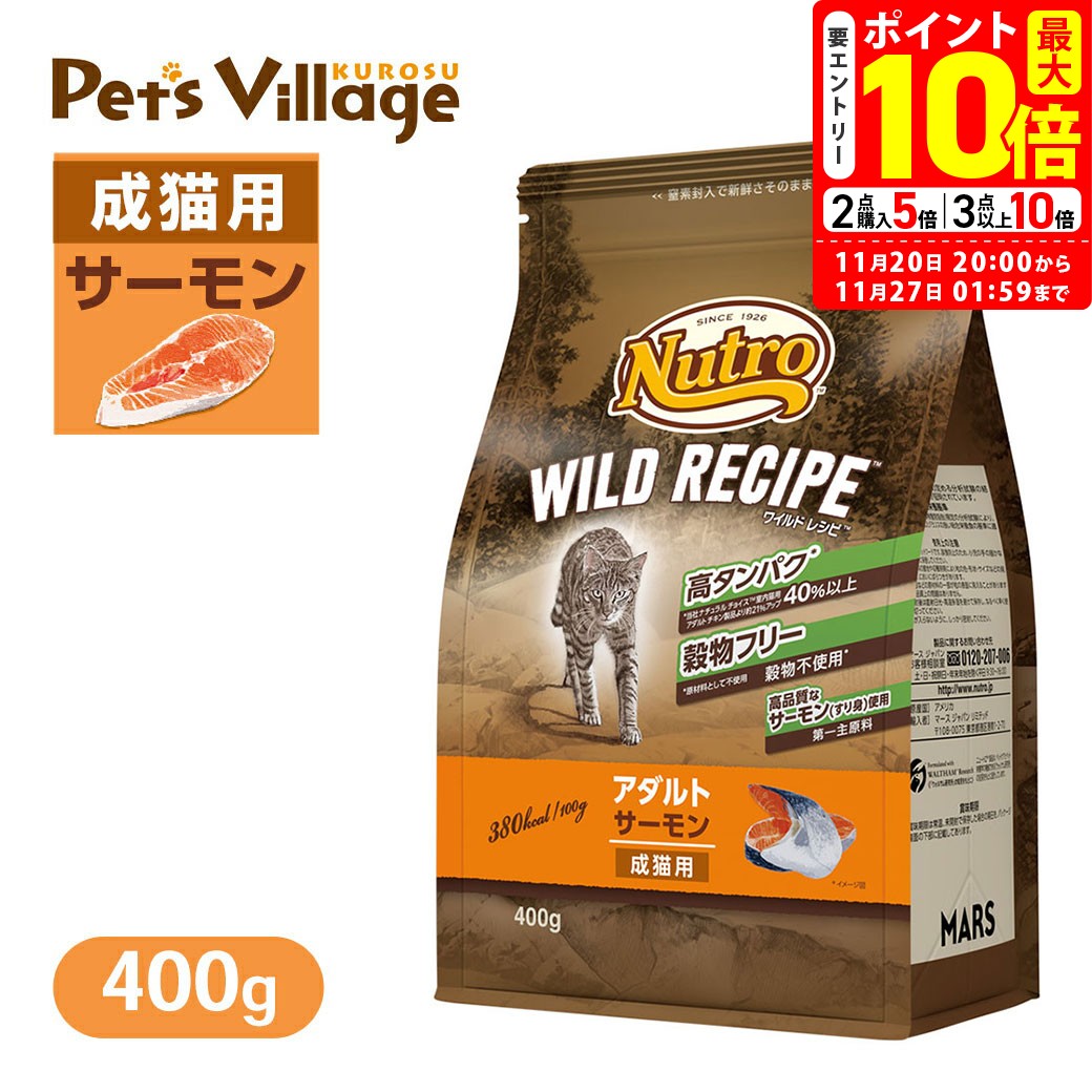 ポイント最大10倍!11/20 20:00〜11/27 01:59まで|お試し 公認店 ニュートロ キャット ワイルドレシピ アダルト サーモン 成猫用 400g ごはん ご飯 【ワイルドレシピ(WILD RECIPE)】[キャットフード] ペッツビレッジクロス