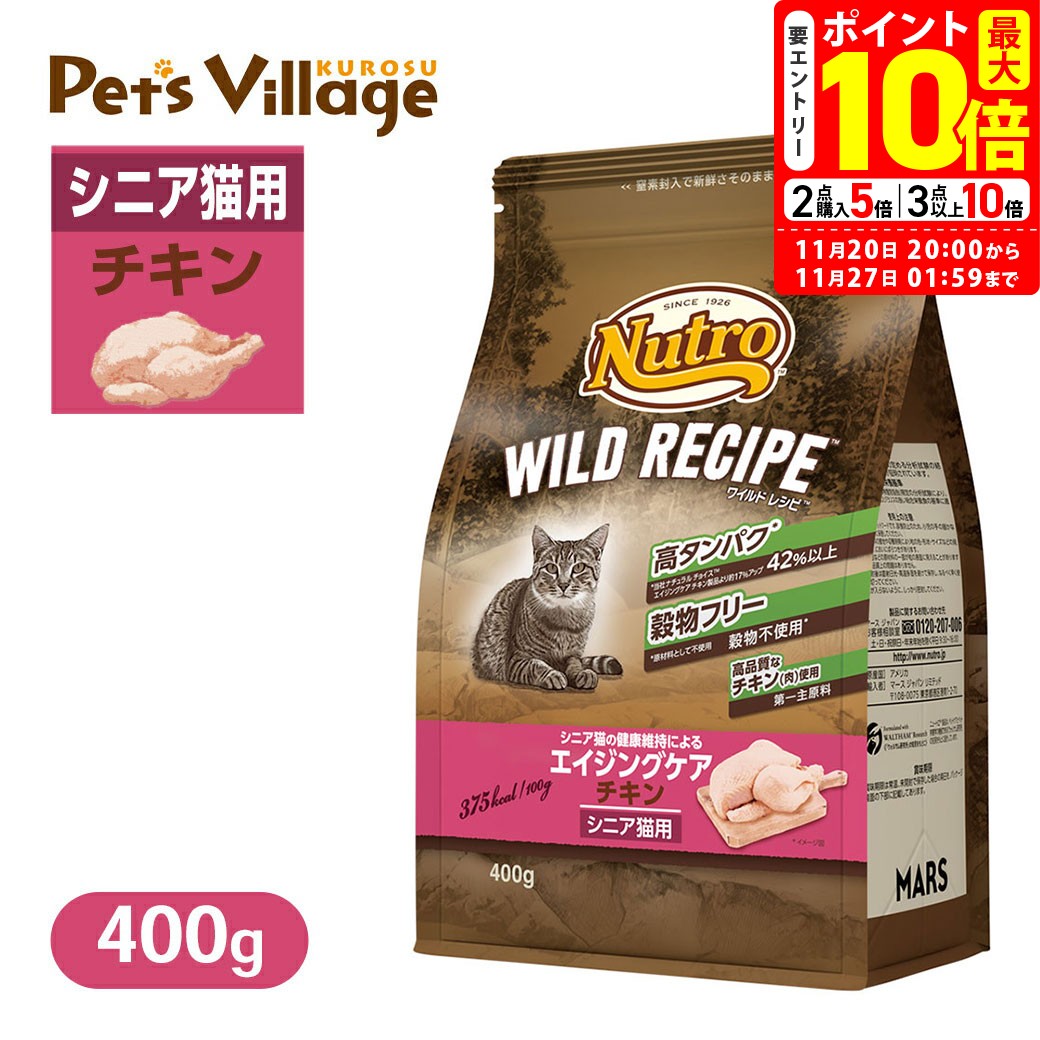ポイント最大10倍!11/20 20:00〜11/27 01:59まで|お試し 公認店 ニュートロ キャット ワイルドレシピ エイジングケア チキン シニア猫用 400g ごはん ご飯 【ワイルドレシピ(WILD RECIPE)】[キャットフード] ペッツビレッジクロス