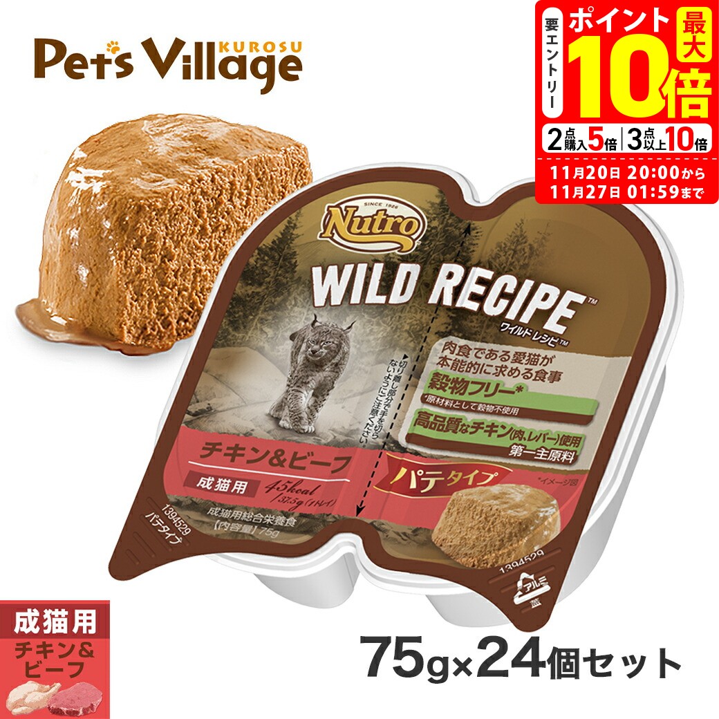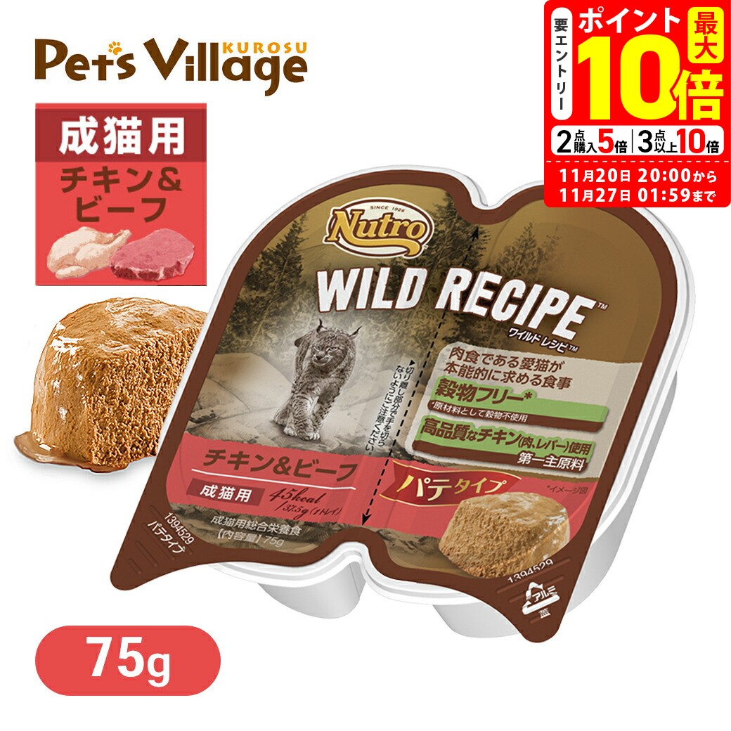 ポイント最大10倍!11/20 20:00〜11/27 01:59まで|公認店 ニュートロ ワイルドレシピ キャットフード 成猫用 チキン&ビーフ パテタイプ 75g×24個 ごはん ご飯 【ワイルドレシピ(WILD RECIPE)】[キャットフード] ペッツビレッジクロス