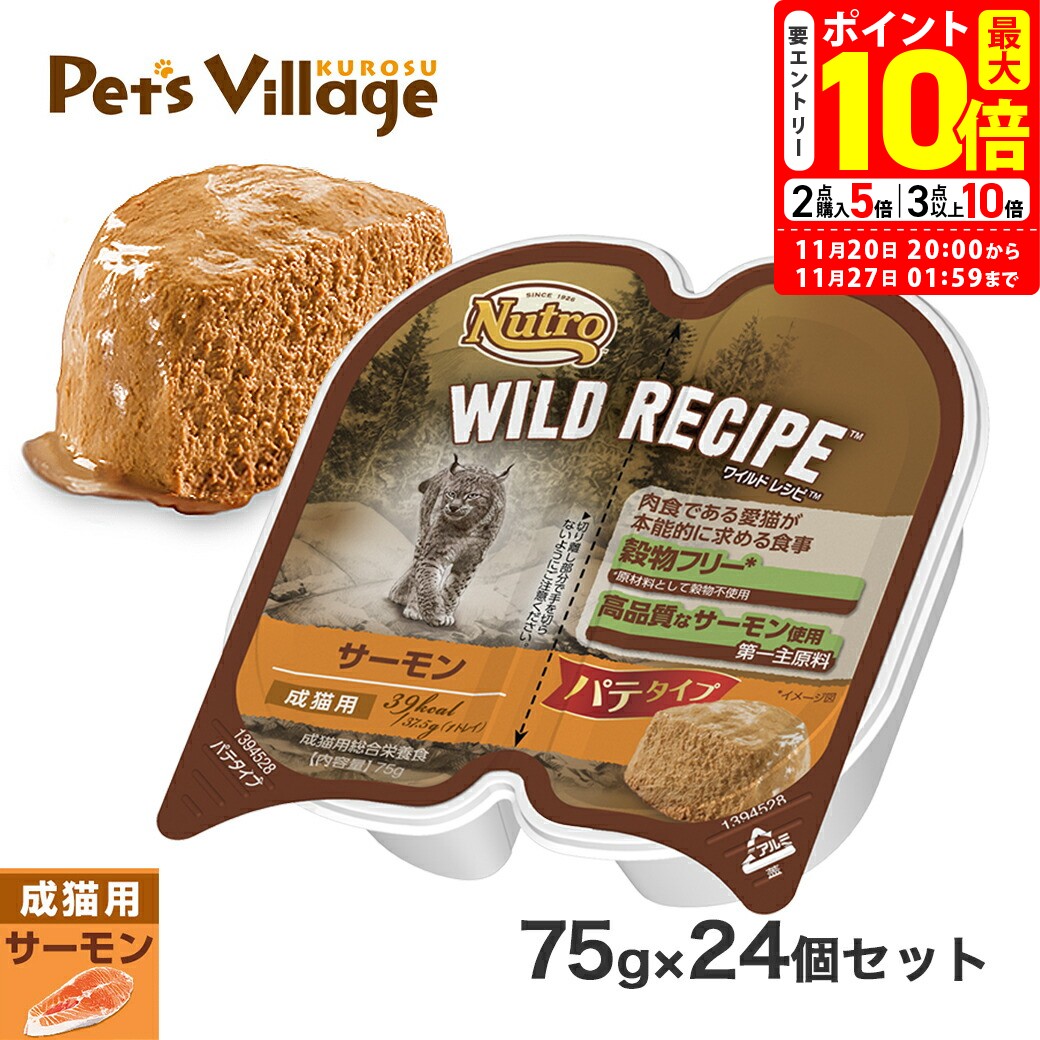 ポイント最大10倍!11/20 20:00〜11/27 01:59まで|公認店 ニュートロ ワイルドレシピ キャットフード 成猫用 サーモン パテタイプ 75g×24個 ごはん ご飯 【ワイルドレシピ(WILD RECIPE)】[キャットフード] ペッツビレッジクロス