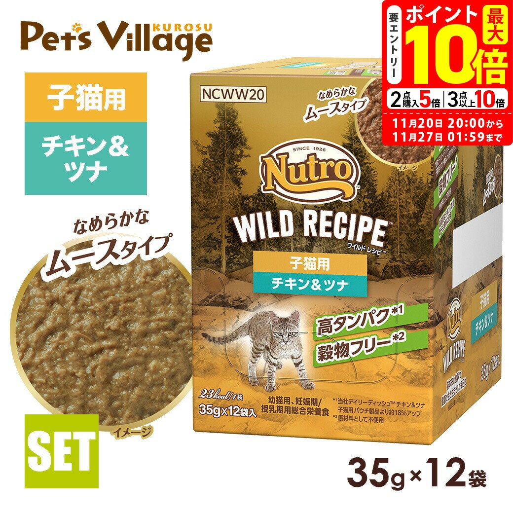 ポイント最大10倍!11/20 20:00〜11/27 01:59まで|公認店 ニュートロ キャット ワイルドレシピ 子猫用 チキン&ツナ なめらかなムースタイプ パウチ 35g×12袋 ごはん ご飯 【ワイルドレシピ(WILD RECIPE)】[キャットフード] ペッツビレッジクロス
