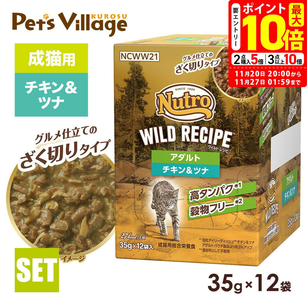 ポイント最大10倍!11/20 20:00〜11/27 01:59まで|公認店 ニュートロ キャット ワイルドレシピ アダルト チキン&ツナ グルメ仕立てのざく切りタイプ パウチ 35g×12袋 ごはん ご飯 【ワイルドレシピ(WILD RECIPE)】[キャットフード] ペッツビレッジクロス