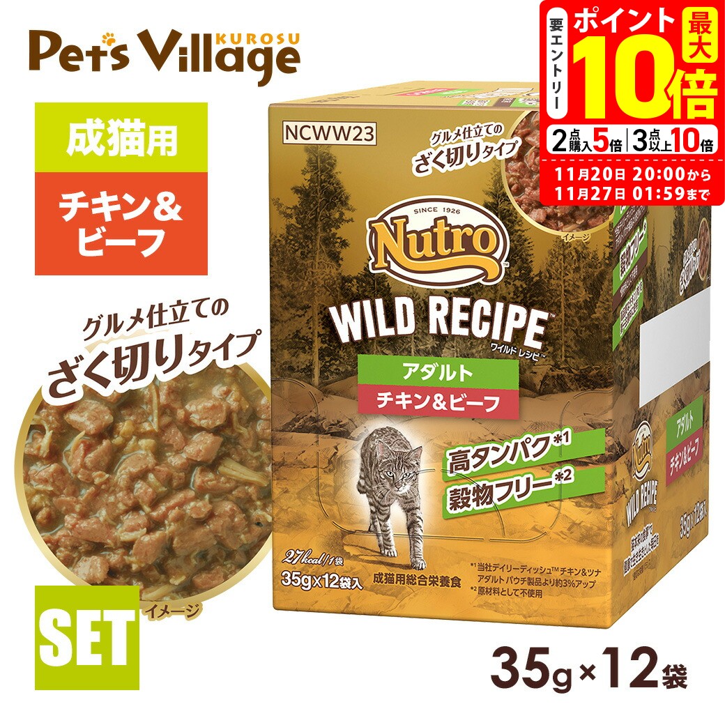 ポイント最大10倍!11/20 20:00〜11/27 01:59まで|公認店 ニュートロ キャット ワイルドレシピ アダルト チキン&ビーフ グルメ仕立てのざく切りタイプ パウチ 35g×12袋 ごはん ご飯 【ワイルドレシピ(WILD RECIPE)】[キャットフード] ペッツビレッジクロス