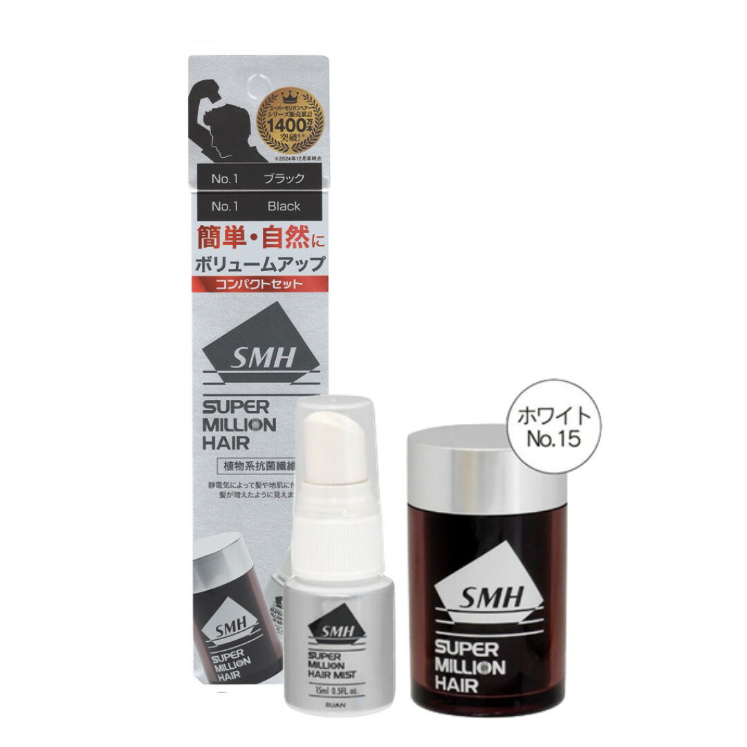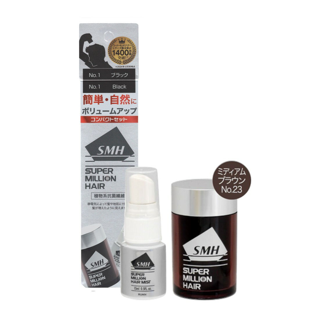 【全6種類】ルアン スーパーミリオンヘアー コンパクトセット No.1 ブラック,No.2 ダークブラウン,No.3 ライトブラウン,No.11 グレー,No.15 ホワイト,No.23 ミディアムブラウン(10g+15ml)