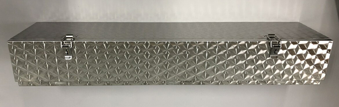 HIJETジャンボ ステンレス 工具箱 鏡面仕様 ハイゼットジャンボのキャビン後スペースに最適!! 材質:ステンレス 鏡面仕様 ※写真はウロコ仕様です。 サイズ:横1100x高さ180x奥行225 特徴:荷台に置くタイプです 梱包サイズ:200