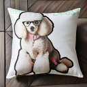 めがね プードル ピンクの首輪 クッションカバー 45×45cm アニマル柄 おしゃれ 可愛い クッション本体付き 正方形 犬ファン