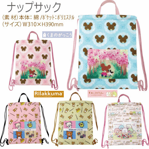 (おまかせ便で送料無料)キャラクター ナップサック くまのがっこう リラックマ すみっコぐらし 入園入学 体操着袋 おけいこバッグ レッスンバッグ 学童