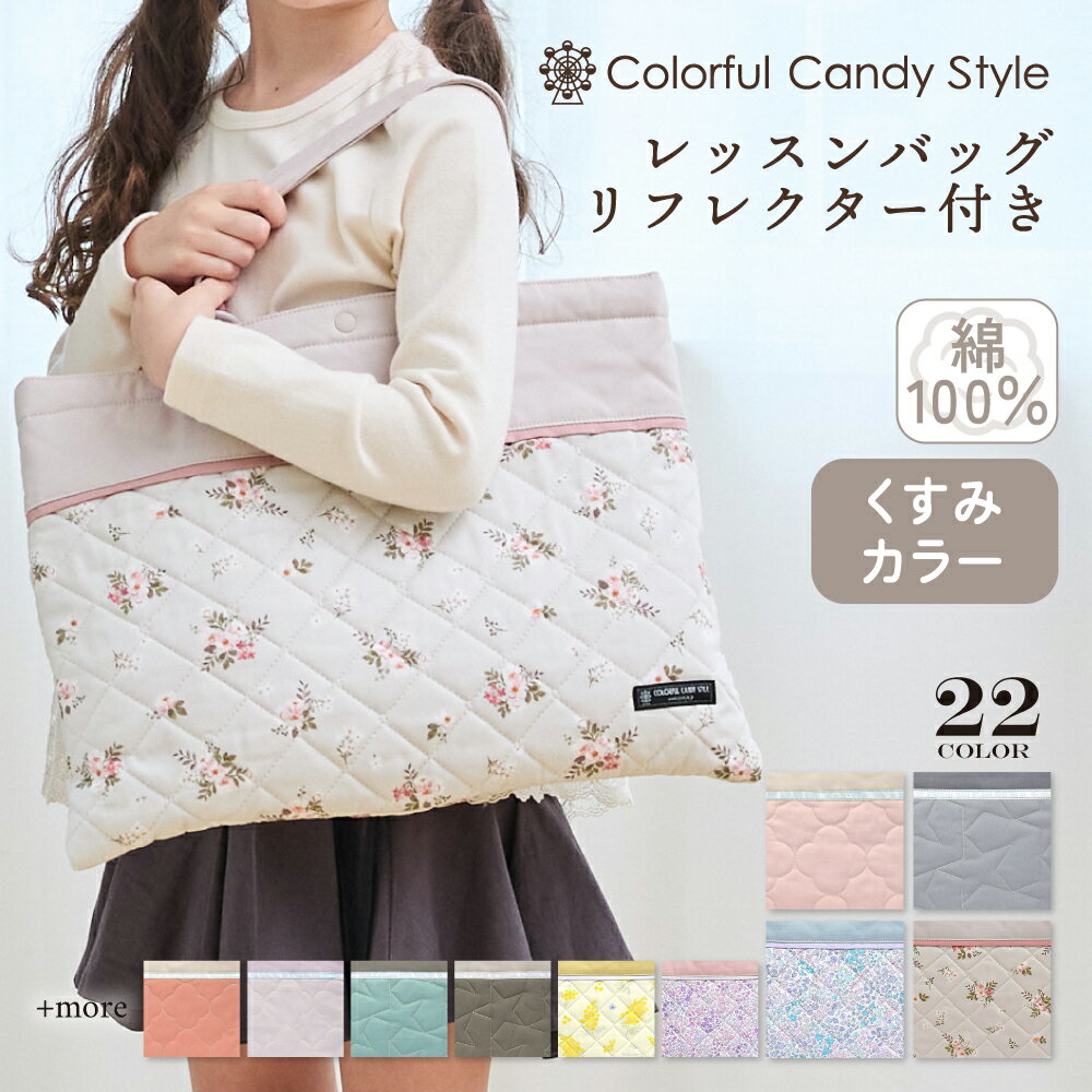 商品の特長■通学・習い事にぴったりのレッスンバッグに反射材付きが登場!夜間の通学・習い事の安全性に配慮した反射材(リフレクター)を搭載しました。1.撥水機能、速乾性、軽量。トップクオリティの新素材で快適さを追及!快適さを追求した新素材は、シワになりにくく、耐久性もバツグン。今後もおしゃれ&可愛い柄で登場予定です。2.軽くて丈夫、そして水を弾く撥水機能!新素材のレッスンバッグで毎日の学びをワクワクさせよう!快適さを追求した新素材は、耐久性のある軽い素材なので、毎日使うレッスンバッグに最適です。水や液体が表面に弾いて滑り落ちる撥水機能は、汚れに強く水に濡れてもサッとひと拭き、お手入れ簡単です。3.便利な内ポケット付き、机に掛けても底につかないループ付き内ポケットにパスケースや文房具など小物を入れることでサッと取り出しやすくなり、レッスンバッグの中身もすっきり整頓できます。小学校や幼稚園、保育園からの指定も多いループ付き。机のフックに掛けても底につかず、教室の机が低くても安心です。4.小学校・幼稚園・保育園からの一般的な指定サイズ30×40cm、スナップボタン&ネームタグ付き大判の絵本やスケッチブックなどがすっぽり入る定番サイズ。名札を付けるDカンも付属しています。袋口のスナップボタンを留めることで、中身が飛び出しにくく安心。プライバシーに配慮し、ネームタグは内側に付いております。5.キレイなまま長期にわたって使える品質と、安全性。COLORFUL CANDY QUALITY国際的なテスト機関で堅牢性・安全性確認済みの素材のみを使用。仕入れから製造・販売まで、リスクを入り込ませない一貫体制。キレイなまま長期にわたって使える品質と、安全性。それがCOLORFUL CANDY QUALITY。サイズ・素材サイズ(単位:cm)タテ:約30/ヨコ:約40/持ち手高さ:約16/ループ高さ:約4.5※商品によってサイズに多少の誤差がございます。予めご了承ください。素材:ポリエステル100%必ずお読みください●使用におけるご注意※ポリエステルには汚れを吸収する特性があり、汚れが強いものと一緒に洗濯してしまうと生地が黒ずんでしまう場合があります。付着した汚れが強いものとは別に洗濯して下さい※ポリエステルには防火性がないため、火を近づけると生地が溶けてしまう可能性があります。高温のアイロンでも変形・テカリが出る場合があります。使用する際はご注意下さい、※乾燥機にかけると変形してしまう可能性があります。もともと乾きやすい生地なので自然乾燥がおすすめです。※熱と一緒にシワをつけてしまうとなかなか取れないので、洗濯機の脱水や乾燥は短めにしてください。※高温のお湯だと逆汚染が起こりやすくなりますので、ぬるま湯をおすすめします。※ポリエステル生地は日光に強い素材ですが、濃い色のものは色落ち色あせしてしまうので陰干しがおすすめです。※色の濃いものと一緒にお洗濯は避けて下さい。※洗濯後、長時間放置しないで下さい。※暑い場所で長期間、他の物と一緒に放置しているとプリントの色移りする可能性があります。●洗濯について洗濯により若干の色落ち、濡れた状態での接触により色移りすることがございます。洗濯の際は、他のものとまとめて洗うのはお避け下さい。●生地柄について商品の特性上、生地の取り位置により柄の出方など多少の個体差が生じ、画像と仕上がりが異なることがございます。あらかじめご了承いただき、それぞれの表情をお楽しみください。●生地色について生地および商品の画像は、できるだけ商品に近いカラーにて掲載をしております。同じ色名でも生地や商品によって明るさや鮮やかさなど色味が異なりますので、ご購入時には商品詳細ページ「生地拡大」にて色味をご確認下さい。※お客様のモニター設定やPCの機種、室内環境等により、色味に違いが発生してしまう場合もございます。●サイズについて商品のサイズは、全て平置きにて外寸を測定しております。商品によっては+-0.5cm?1cmの誤差が発生してしまう場合がございます。●商品仕様について商品は写真と異なる場合や同等品へ仕様変更する場合がございます。予めご了承ください。また、お揃い生地商品が完売の際はご了承ください。