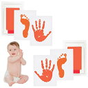 赤ちゃん 手形 足形キット 2セット オレンジ 汚れないインク ベビーフレーム ギフト 誕生日 成長記録 出産祝い 1歳誕生日 猫犬手足型 記念品