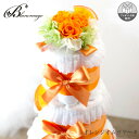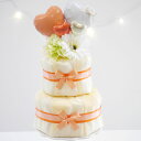 出産祝い おむつケーキ オレンジ オムツケーキ 3段 フルーツ フラワー ミニブーケ 赤ちゃん 出産 プレゼント お祝い 男の子 女の子 ダイパーケーキ 花 ラッピング 結婚祝い 贈り物 シンプル