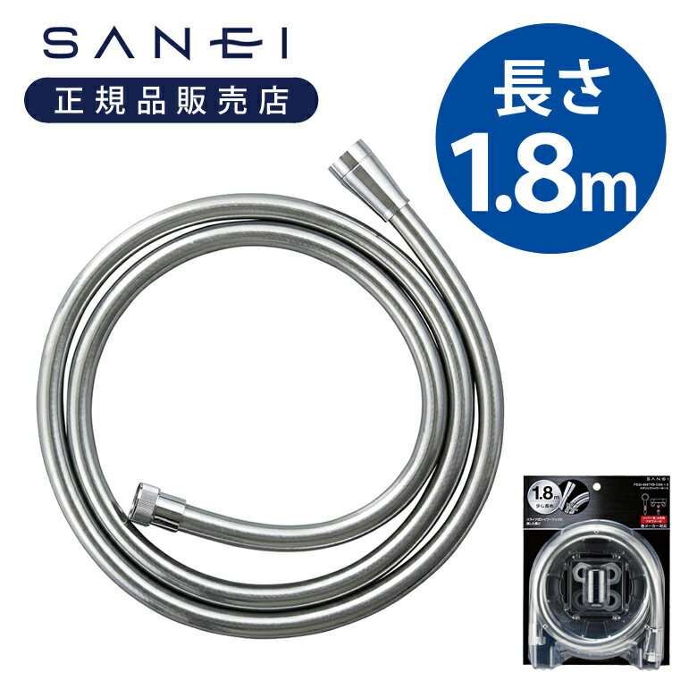 【正規品】SANEI メタリックシャワーホース ミラー 長さ 1.8 メートル PS30866CM | PS30-866TXB-CM6-1.8 三栄水栓 サンエイ 工事不要 交換 取り換え 取り替え 取付 取換 取替 簡単 国産 日本製 made in Japan 1.8m 180cm アダプター付 高級感 ロング 長め