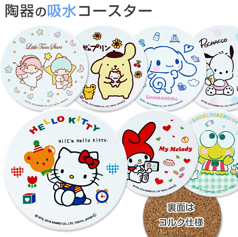 【サンリオ 陶器の吸水コースター】※裏面コルク仕様 Sanrio おしゃれな食器 キティ/マイメロ/ポムポムプリン/シナモロール グッズ ども 大人 ギフト プレゼント #san539【金正陶器】