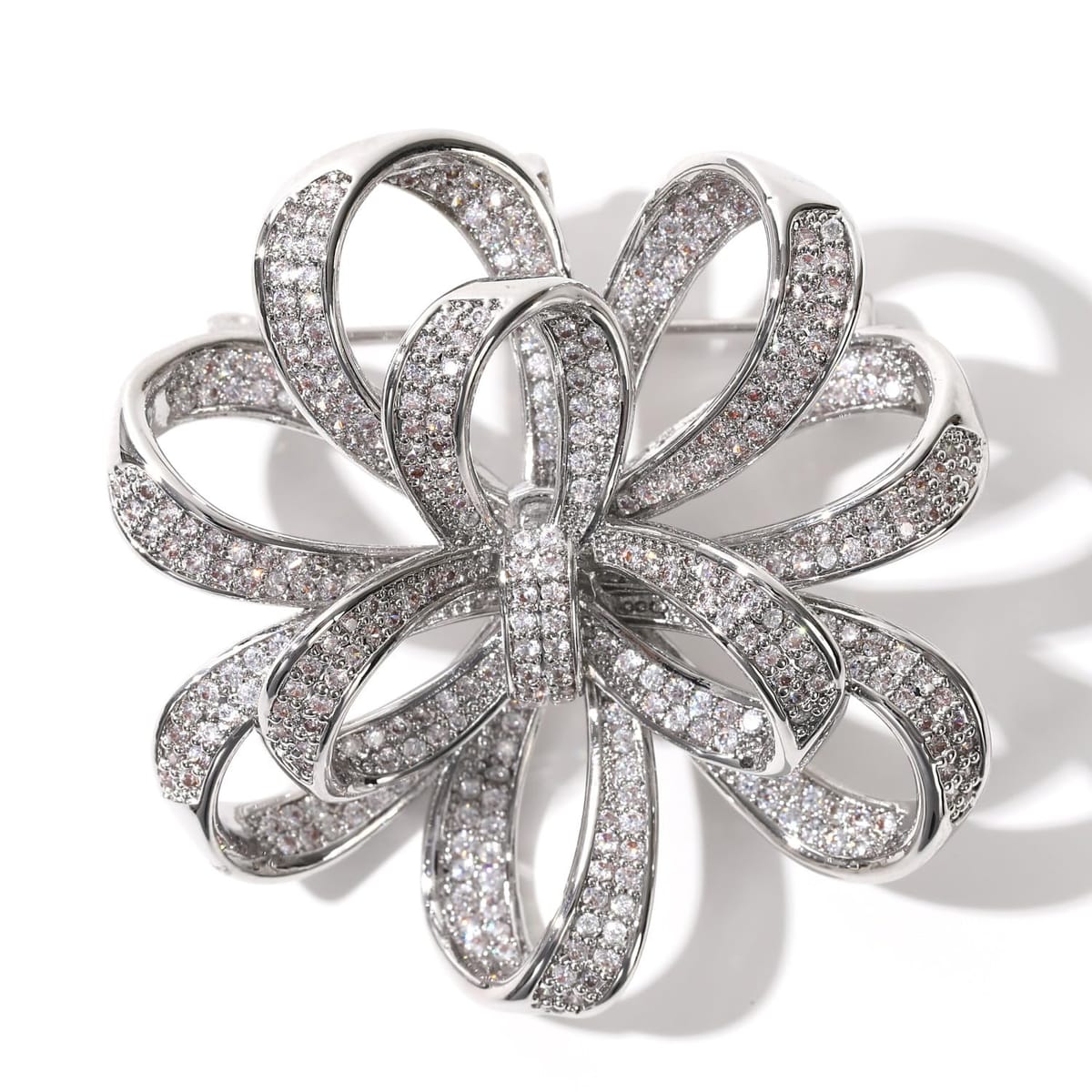 [ティグロス] TIGLOSS ブローチ ジルコン ジルコニア スワロフスキー クリスタル リボン 記念日 お祝い コサージュ セレモニー シルバー ゴールド フォーマル ジェケット スーツ ギフト 結婚式 お呼ばれ ドレス パーティー ピン おしゃれ