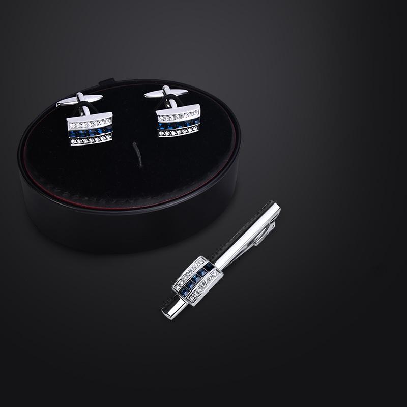 ・素材: 合金・バリエーション: ネクタイピン(五粒ブルーストーン).カフス.カフス2点セット