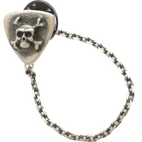 ■RustySkull/ラスティスカル【ピンバッチ、ラペルピン】父の日、 └【タイプ】 タイタック父の日、シルバー925、真鍮使用、スカル骸骨ドクロ、錆びた、クロスボーン、パイレーツ、ダメージ、、チェーン、ピンズ、ギフト【素材:シルバー】 [要確認]メーカー取寄せ時2-4日/メーカー欠品時の納期約2週間(在庫、詳細納期は要問合せ)★ピックベースにクロスボーンを合わせた王道コンビのピンズ。(高さ15mm幅14mm、4面カットチェーン約7cm付、金具部分は真鍮+ブラックメッキ。)ロックなコンビとしても定番のギターピックとスカルをミックス。ストリート系のファッションのアクセントとしても相性抜群。他にシンプルなチェーンレスタイプや定番スカル、パイレーツフラッグモデルなども幅広く展開、自分のスタイルに合ったスカルを是非探してみて♪