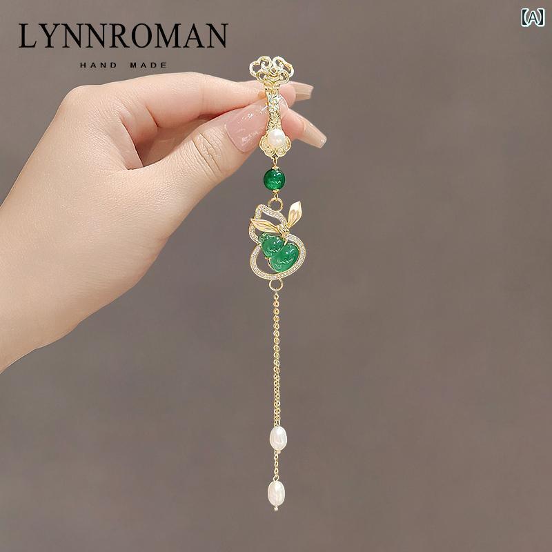 レディース 中華風 ヒスイ ヒョウタン タッセル チャイナ プレス 前立て 中華風 韓服 アクセサリー アンティーク バックル ヘッド ペンダント