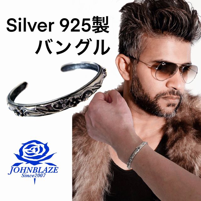JOHNBLAZE 商品説明 シルバー925製バングル フラワーデザイン キュービックジルコニアをセッティング 925刻印 サイズ A=4.6センチ (タテ幅) B=5.8センチ (ヨコ幅) C=2.8センチ (開口幅) D=6.8ミリ (高さ) E=3.5ミリ (線径) 多少の誤差はご了承下さい。 重 量 約15g 多少の誤差はご了承下さい。 材 質 Sterling Silver シルバー925製 注意事項 モニター機種環境により色合いが異なって見える場合がございます。 ハンドメイド品、掲載画像はサンプルを撮影したものです。 商品毎により個体差があり、色合いや燻し風合いが異なります。 生産過程に生ずる小傷などがある場合がございます。 シルバー925製の材質上、銅や亜鉛、ニッケルなどを含みます。 金属アレルギーがある方はご着用できません。 あらかじめご理解ご了承の上、ご購入お願い致します。 JOHNBLAZE