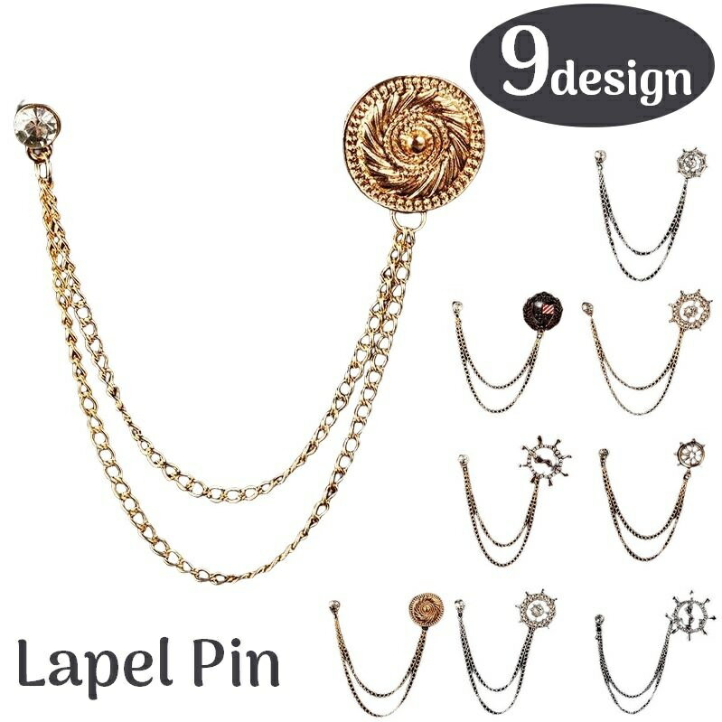 送料無料 ピンブローチ ラペルピン メンズ レディース 男女兼用 アクセサリー ダブルチェーン ラインストーン 紋章 イカリ アンカー サークル 舵 きらきら おしゃれ きれいめ 上品 かっこいい ジュエリー ブローチ チェーン フォーマル パーティ 結婚式 ギフト プレゼント 金
