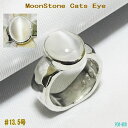 ムーンストーン キャッツアイ オーバル 大きめ シルバーリング 925 溶銀鍛造輪 天然石 シルバーアクセ工房 パウワウ代官山 手作り【13.5号 画像商品】【9号〜30号 受注製作】
