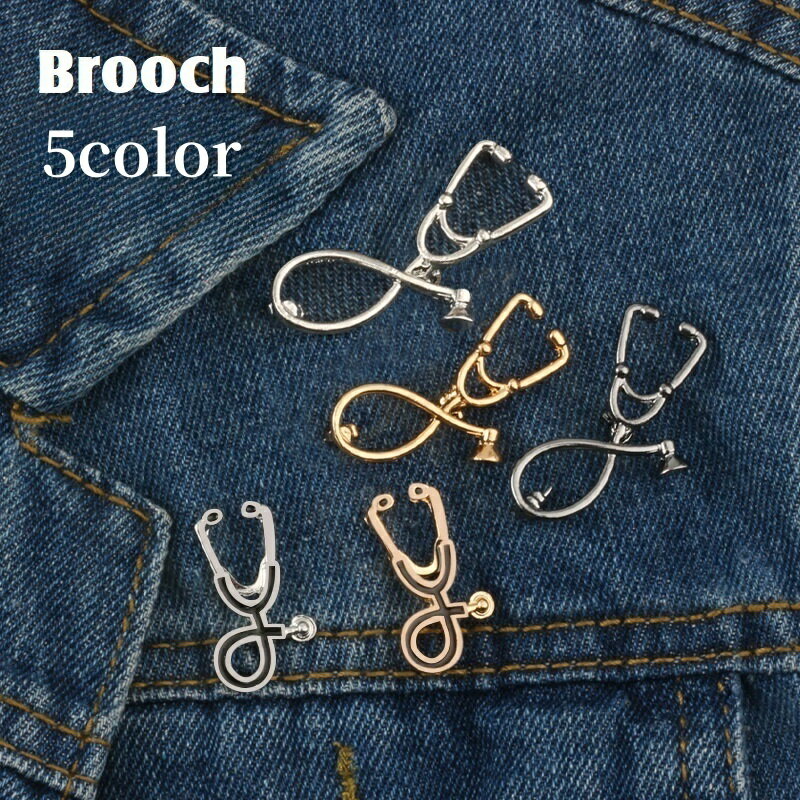 送料無料 ブローチ ピンブローチ ラペルピン レディース メンズ 男女兼用 アクセサリー バッジ 聴診器 かわいい おしゃれ 小ぶり 小さめ 胸元 胸ポケット アクセント ピンズ ピンズブローチ 看護師 医師 病院 プレゼント ギフト 金色 銀色 黒