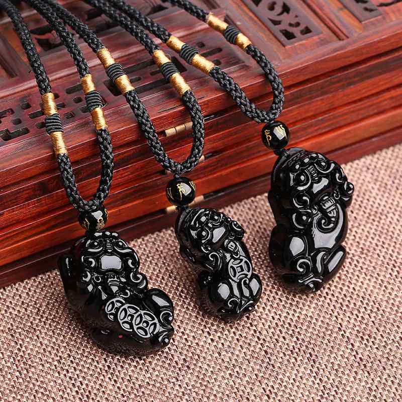 ヒキュウ 貔貅 ネックレス メンズ レディース カップル 風水 アクセサリー 黒曜石 クリスタル ペンダント シンプル ギフト ジュエリー ブラック