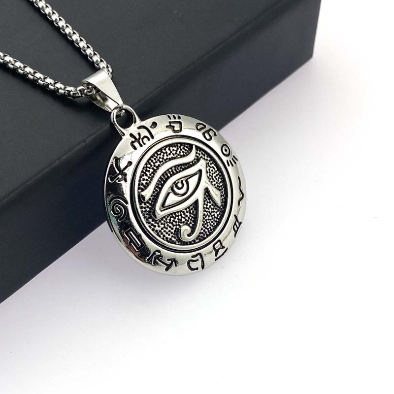 ネックレス ユニセックス ホルスの目 ペンダント 合金製 ステンレス ボックスチェーン 電気メッキ加工 欧米風 レトロ パンク 個性的 ロングアクセサリー
