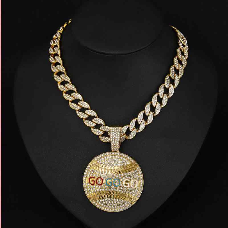 ネックレス メンズ レディース 円形 ドロップ加工 GO GO GO 英字 ペンダントトップ キューバンチェーン ヒップホップ ストリート カジュアル 亜鉛合金 シルバー ゴールドカラー アクセント