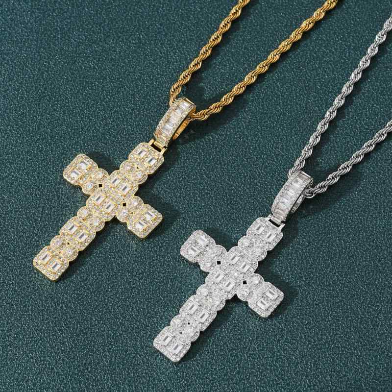 ネックレス メンズ 合金製 ジルコニア 十字架 ペンダント キューバンチェーン ヒップホップ ストリート 個性的 高級感 ファッションアクセサリー カジュアル モードスタイル 普段使い シルバー ゴールド