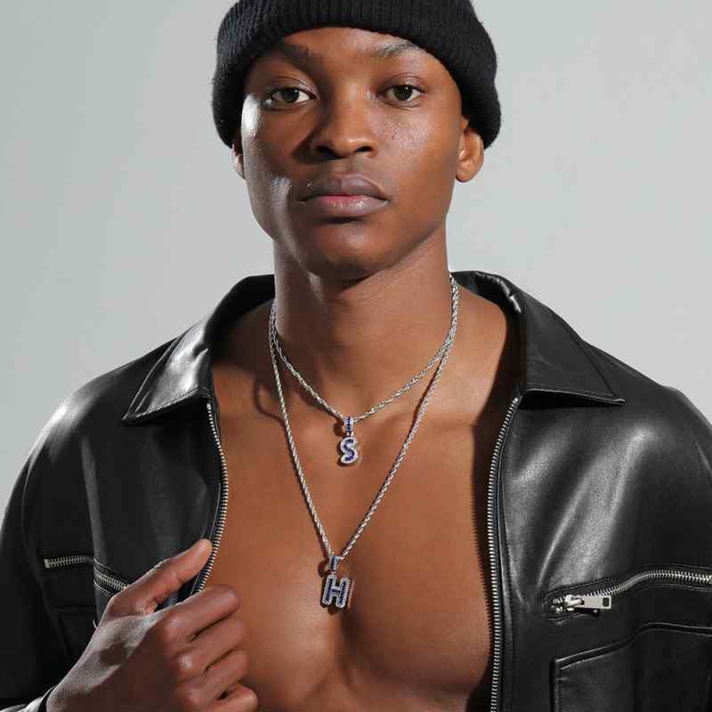 ネックレス メンズ GANG レター アルファベット ヒップホップ ペンダント ジルコニア 装飾 銅製 ゴールド シルバー ストリート系 ファッション トレンド アクセサリー カジュアル 首飾り