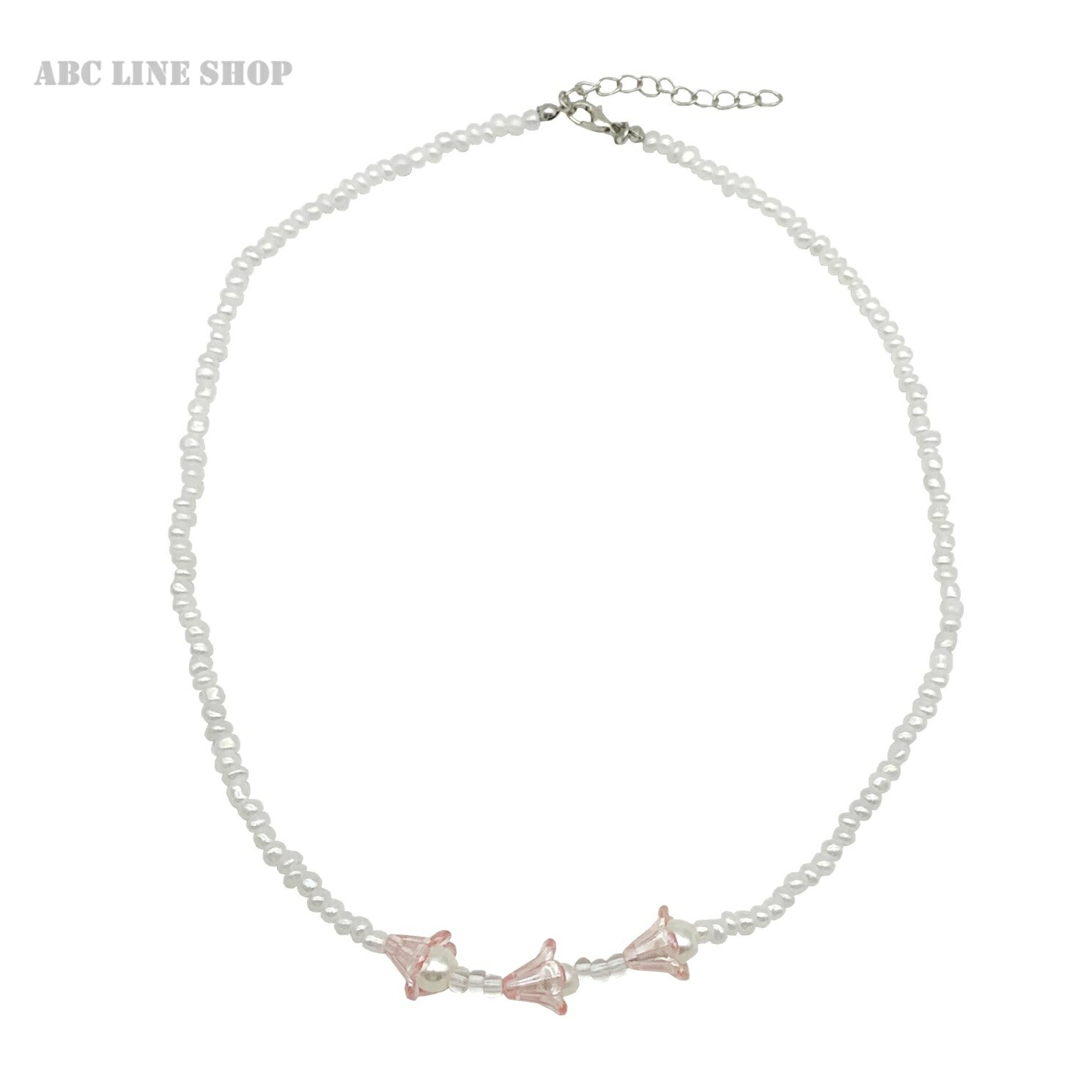 花柄 ビーズネックレス ジョンハン 可愛い モチーフアクセ 人気アクセサリー 韓国ファッション K-POP 花びら ビーズアクセサリー 光沢感のある乳白色ビーズ メンズ レディース お洒落 可愛い ユニセックス 韓国 オルチャンアクセサリー 5