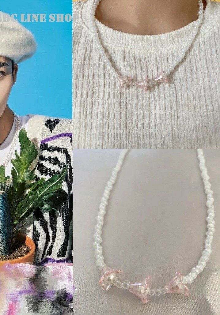 ビーズネックレス 花柄モチーフ セブチ ジョンハン 可愛い 花 ピンク モチーフアクセ ビーズアクセサリー 韓国ファッション メンズ レディース
