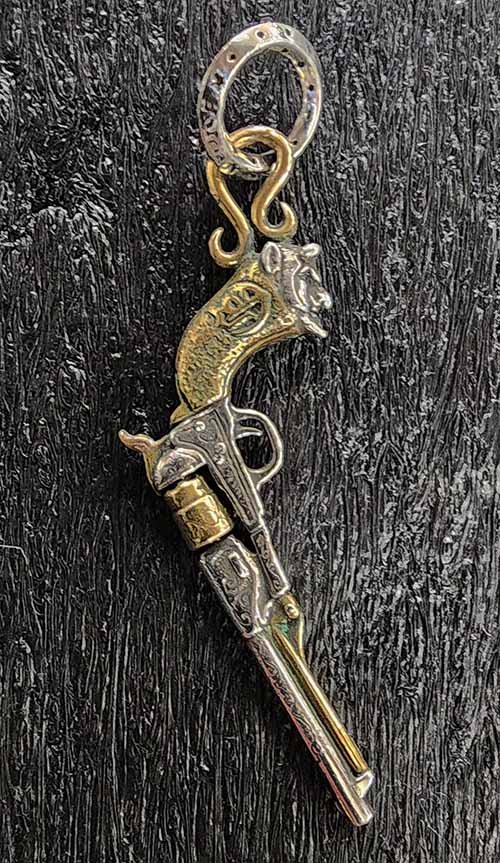 galcia NECKLACE PENDANT "DRGOON TYPE 6 BULLET PISTOL SILVER925 & BRASS DEVIL SUN & MOON ガルシア ネックレス ペンダント ドラグーンタイプ ピストル 太陽と月 6バレット 6発弾装 シルバー&ブラス (25NT-DP001SB)