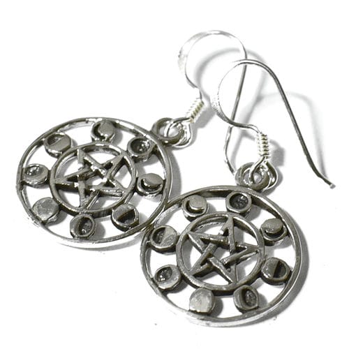 五芒星(ペンタグラム) ムーンフェイズ スターリングシルバー ピアス(セット、対) ペンタクル 月の満ち欠け【メール便対応可】