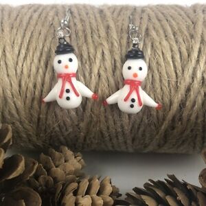 【送料無料】ジュエリー・アクセサリー ガラスイヤリングシルバースターリングノベルティイヤリングセットクリスマスvetro pupazzo di neve orecchini, fatti a mano argento sterling novita orecchino set, r
