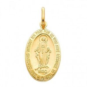 【送料無料】ネックレス イエローゴールドメアリーペンダントレディ14k yellow gold religious our lady of grace miracle mary medalia charm pendant