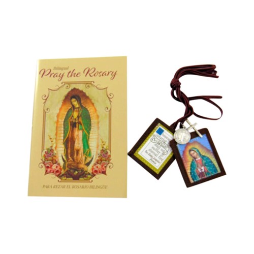 Traditional Brown Scapular Our Lady of Guadalupe with Pray The Rosary Book Gift Set トラディショナル ブラウン スカプラリオ 聖母マリア グアダルーペ ロザリオ ブック ギフト セット クロス 十字架 キリスト教 ペンダント 祈り お守り メキシコ雑貨 メキシカン雑貨