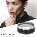 チェッカー 模様 ブラック リング 指輪 11〜22号 ステンレス 市松模様 格子柄 モザイク 黒 スタイリッシュ クール かっこいい ステンレスリング メンズ レディース 男性 女性 彼氏 彼女 ユニセックス クリスマス プレゼント 人気 おしゃれ