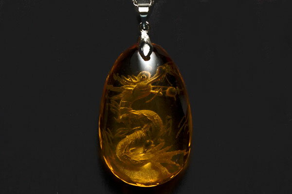 【ペンダント】龍彫り オーバル型裏彫り シトリン 【パワーストーン 天然石 アクセサリー レディース】
