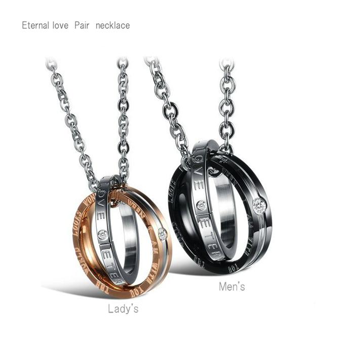 nec00161 金属アレルギー対応 ジュエリー・アクセサリー ステンレス ネックレス 人気のダブルリングペンダントMy only love=私の唯一の愛する人 ネックレス ステンレス メンズ・レディース ジルコニア リング