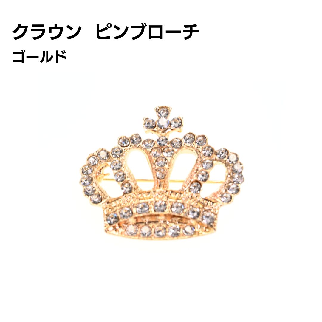 ピンブローチ 王冠 ラインストーン ゴールド キラキラ フォーマル おしゃれ アクセサリー メンズ レディース ギフト プレゼント