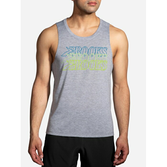 ブルックス Brooks 【 Men's Br Stack Logo Distance Tank 3.0 Men Ash 】 メンズ ロゴ タンクトップ スポーツ アウトドア ランニング マラソン ウェア メンズウェア メンズ