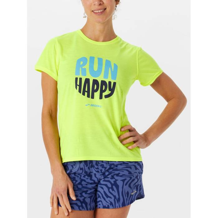 ブルックス Brooks 【 Women's Distance 3.0 Run Happy Short Sleeve Women Neo Yellow 】 レディース ラン Sleeve スリーブ スポーツ アウトドア ランニング マラソン ウェア レディースウェア レディース ネオ yell