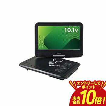 商品説明★ テレビもDVDも楽しめる!10.1型液晶搭載ポータブルDVDプレーヤー★ 大画面10.1型ワイド液晶(1024×600)搭載のポータブルDVDプレーヤー★ 地デジやワンセグも楽しめる★ 内蔵バッテリーで最長2時間のDVD再生が可能★ 液晶が180度回転して折りたためてコンパクトに視聴★ 地デジを録画したDVDも楽しめるCPRM(VRモード)対応★ 前回の続きから再生できるラストメモリ(レジューム)機能対応★ SD/SDHC/USBメモリー対応★ ビデオカメラやテレビと接続できる映像入力・出力端子を搭載★ 車内で楽しめるヘッドレスト取り付けキット&シガーソケットアダプタ付属★ 便利なリモコンが付属★ 安心のメーカー1年間保証スペック* ディスプレイ:10.1型ワイド液晶* ディスプレイ画素数:1024×600ピクセル(16:9)* 対応ディスクフォーマット:DVD-VIDEO / DVD-VR(CPRM対応) / CD-DA / データDVD /データCD* 対応ディスクタイプ:DVD-ROM / DVD±R / DVD±R DL / DVD±RW / CD-ROM / CD-R / CD-RW* 対応音声コーデック:PCM* ラストメモリー機能:最大1件まで記憶 ※設定で機能を「オン」にする必要があります。* 対応外部メモリー:SDカード(〜2GB) / SDHCカード(〜32GB) / USBメモリー(〜32GB)※miniSDカード、microSDカード、microSDHCカードを使用する場合、別途専用アダプタが必要になります。※FATまたはFAT32でフォーマットされた外部メモリーのみ対応* 対応ファイル形式:MPEG1 / MPEG2 / MP3 / JPEG* 受信チャンネル:地上デジタル放送 / ワンセグ放送 (自動切替機能付き) UHF13〜62ch* 出力信号方式:NTSC* スピーカー:2chステレオ(1.5W×2)* 搭載端子:USBポート×1、SDカードスロット×1、ヘッドホン出力端子(ステレオミニ)×1、映像入力端子×1、映像出力端子×1、* 電源入力端子×1、アンテナ入力端子(F型)×1、miniB-CASカードスロット×1* 電源(ACアダプタ)・入力:AC100V 50/60Hz・出力:DC12V / 1.5A* 電源(シガーアダプタ)・入力:DC12V / 2.0A (※12V車対応)・出力:DC12V / 2.0A* 消費電力:最大10W* 再生時間(バッテリー):約2時間15分(DVD再生時)/約1時間30分(TV視聴時)* 充電時間(バッテリー):約3時間* 動作温度範囲:5℃〜40℃* 動作湿度範囲:20%〜80%(結露なきこと)* 外形寸法:W260×D205×H43 (mm)* 本体重量:約950g* 付属品:専用リモコン(テスト用電池取付済)、専用AVケーブル(約110cm)、専用ACアダプタ(約140cm)、専用シガーソケットアダプタ(約130cm)、専用ヘッドレスト取り付けキット、地上デジタル/ワンセグ用ロッドアンテナ、地上デジタル専用 miniB-CASカード、取扱説明書、保証書【リチウムイオンバッテリー搭載製品の使用に関する注意事項】・自動車のダッシュボードや窓際など直射日光の当る場所、駐車中の自動車内など、高温になる場所に放置しないでください。バッテリーの液漏れにより、発熱、破裂、発火の原因になります。・ストーブやヒーターなどの熱源のそばに放置しないでください。発熱、破裂、発火の原因になります。・本体にACアダプタを接続したままの状態を継続させて、長時間充電し続けないでください。バッテリーの劣化を早めたり、発熱、破裂、発火の原因になります。・長期間にわたって使用しないなど、バッテリー残量が空の状態で放置しないでください。バッテリーの劣化を早めたり、発熱、破裂、発火の原因になります。・水、海水、ジュースなどの液体で濡らさないでください。内部の保護回路が損傷し、発熱、発煙、発火の原因になります。・火の中に投入したり、熱源のそばで使用しないでください。保護回路が損傷し、発熱、破裂、発火の原因になります。・落下させるなど強い衝撃を与えたり、投げつけたりしないでください。バッテリーが変形したり、保護回路が損傷し、異常な電流、電圧で動作する可能性があり、発熱、破裂、発火の原因になります。・充電中や使用中に可燃物を上に載せたり、覆ったりしないでください。発熱、破裂、発火の原因になります。・本製品に内蔵されているバッテリーには経過年数や使用頻度によって劣化、消耗が起こり、充電しても使用できる時間が極端に短くなります。・本製品の使用時や充電時、保管時に、異臭、発熱、変色、変形、その他の異常に気づいた時は、直ちに使用を中止してください。そのまま使用するとバッテリーが発熱、破裂、発火する原因となります。・本製品に内蔵されているバッテリーが液漏れしたり、変形、異臭がする時には、すぐに火気から遠ざけてください。漏れた電解液やガスに引火し、破裂、発火する原因になります。【ご使用上の注意】・業務用途としてはご使用にならないでください。長時間のご使用は、過負荷による故障の原因となり、火災や感電の危険がありますので、業務用途でご使用の際は、事前に、メーカー(03-5421-2255)までご相談ください。・付属の乾電池はテスト用のため、寿命が短い場合があります。・指定の電池を使用し、長時間使用しないときは、電池を取り外してください。・ディスクや外部メモリーは付属しておりません。・対応するディスクフォーマットやディスクタイプ、外部メモリーであっても再生できない場