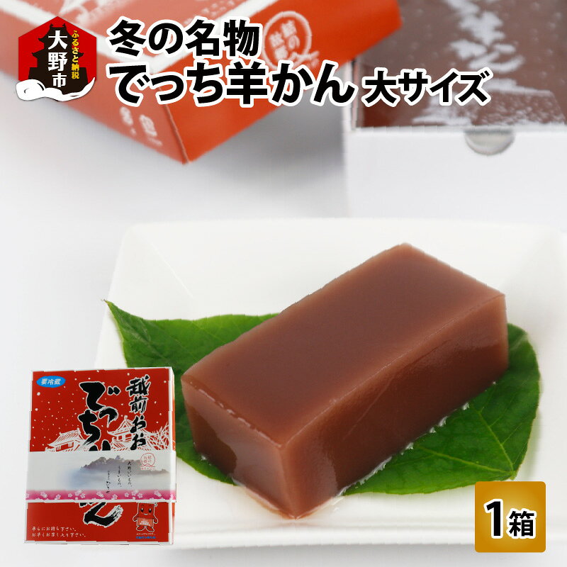名称 でっち羊かん(水ようかん) 内容量 ◇でっち羊かん(水ようかん)◇ 大サイズ (約980g)×1箱 ◇箱のサイズ◇ 縦 約21cm×横 約15,2cm×高さ 約4,4cm ※必ず冷やしてお召し上がりください。 原材料 小豆餡、砂糖、黒糖、寒天 アレルギー 特定原材料8品目および特定原材料に準ずる20品目は使用していません 申込期日 2026年3月20日まで 発送期日 2025年11月~順次発送 配送方法 冷蔵配送 ※北海道・沖縄・離島への返礼品の発送は対応しておりません。 ※連休をはさむ場合や、遠方へのお届けの場合はお届けに遅延が生じる可能性があります。 賞味期限 発送日より5日以内 ※到着後はお早めにお召し上がりください。 保存方法 要冷蔵 事業者 お菓子のひろせ >提供元の全てのお礼の品を見る 備考 ※画像はイメージです。 【ご注意ください】 ※「ギフト用包装」をご希望の場合は、備考欄にご記入ください。 ※「のし」をご希望の場合は、備考欄に「表書き」、「名入れ」、「無地」等の詳細の内容をご記入ください。 ※備考欄へ記載がない場合は、紅白蝶結びの無地のしで対応させていただきます。 ※北海道・沖縄・離島への返礼品の発送は対応しておりません。 ・ふるさと納税よくある質問はこちら ・寄附申込みのキャンセル、返礼品の変更・返品はできません。あらかじめご了承ください。【ふるさと納税】【先行予約】福井県大野市 冬の名物 でっち羊かん お菓子のひろせ 水ようかん 大サイズ(約980g)×1箱【11月〜順次発送】[A-035008] 大野の美味しいお水でつくった でっち羊羹。 ひろせのでっち羊羹は、北海道産の小豆で出来ています。 甘すぎず、すっきりとした甘さに、ほんのり黒糖の風味を感じさせます。 小豆と黒糖のバランスを丁度いい塩梅で仕上げており、口どけもよく、口の中でスッと溶けて、ぺろっと沢山食べれます。 大野の名水でつくられた自慢のでっち羊かんをこの機会にぜひご賞味ください。 寄附金の用途について (1)特色ある地域づくりの推進 (2)教育理念「明倫の心を重んじ 育てよう 大野人」の実現 (3)文化・スポーツを通じて、将来の夢が持てるふるさとづくり (4)子育て支援・健康づくり・高齢者福祉の充実 (5)水を守り活かしたまちづくりの推進 (6)農業・農山村の未来を守る (7)商工業の活性化 (8)脱炭素型のまちづくり(9)市長にお任せ 受領証明書及びワンストップ特例申請書のお届けについて 入金確認後、注文内容確認画面の【注文者情報】に記載の住所にお送りいたします。発送の時期は、入金確認後2〜3週間程度を目途に、お礼の特産品とは別にお送りいたします。